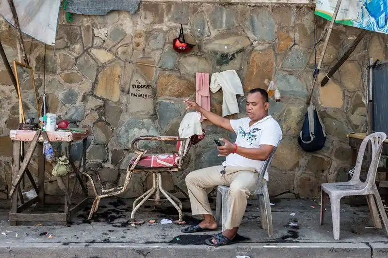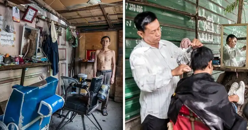Камбоджа - бедная страна, и многие ее жители отказывают себе в самом необходимом. Но только не в хорошей стрижке! В столице страны, Пномпене, и во многих других городах, парикмахерские встречаются на каждом углу, иногда - просто на улице. Мюнхенский фотограф Роберт Гетцфрид, будучи в Пномпене, создал фотосерию, посвященную местным парикмахерам и их рабочим местам.