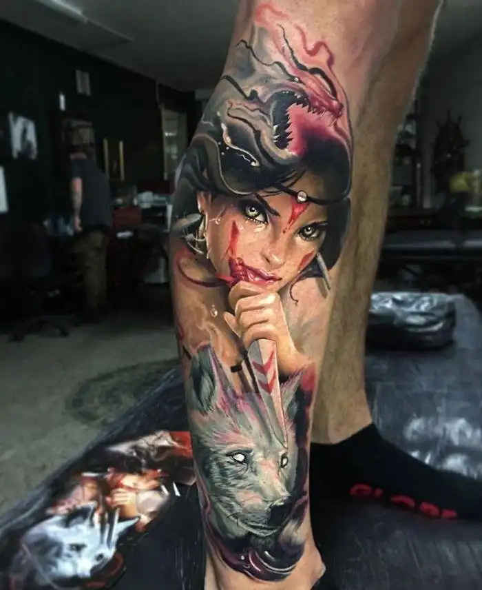 В Новой Зеландии живет интересный человек. Бен Кейе долгое время работал в Америке, Испании, путешествовал по Азии и в конце остановился на краю света. Бен тату-мастер, вобравший в свое творчество рационализм Запада и мистику Востока. Его работы выглядят гиперреалистично, насколько это возможно при работе с кожей живого человека. Каждый сюжет нужно рассматривать с разных ракурсов, находя всякий раз незамеченную деталь.