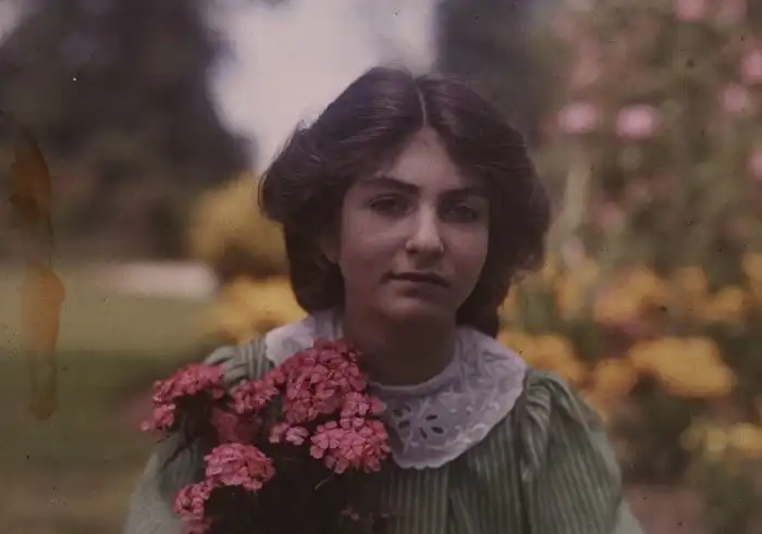 Автохром оставался самой популярной технологией фоторафирования до 1930-х годов, когда были изобретены более совершенные фотоматериалы. На снимке - две девушки на маковом лугу, 1920 год.