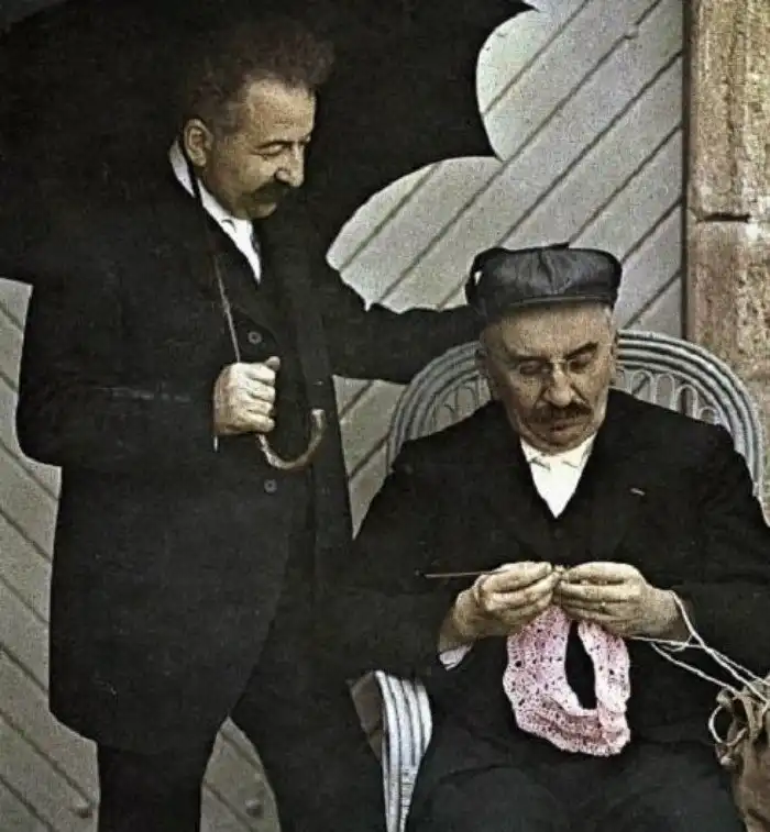 Изобретатели автохромного метода фотографии, братья Луи и Огюст Люмьеры. Лион, Франция, 1907 год.