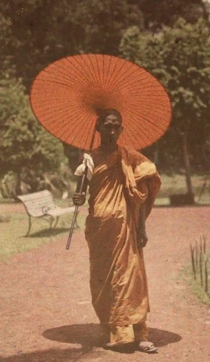 Буддистский монах прячется от солнца. Камбоджа, 1928 г.