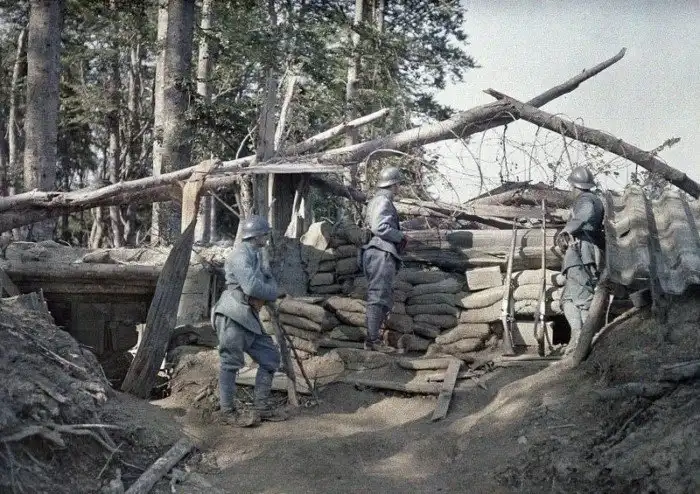 Первая мировая война. Французский наблюдательный пост вблизи немецких позиций, 1917 год.