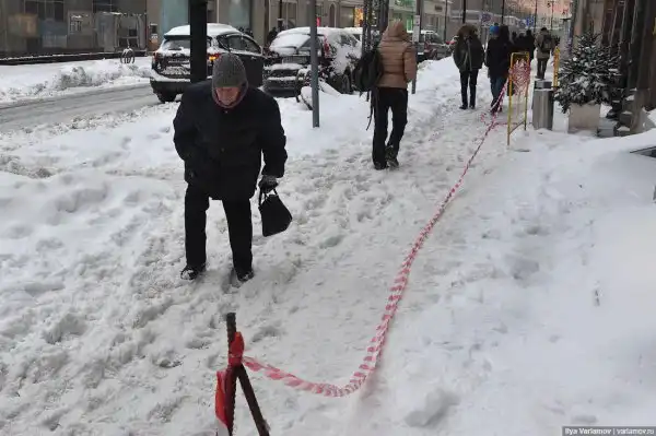 В Москве второй день идет рекордный снегопад! Метеорологи говорят, что так много снега в это время не выпадало за всю историю метеонаблюдений. Город встал в пробках, улицы завалило упавшими деревьями, несколько человек уже пострадали от непогоды, а один даже погиб. Мэрия Москвы и МЧС настоятельно рекомендуют горожанам не то что не парковаться под деревьями, но и вообще по возможности никуда не выбираться из дома.