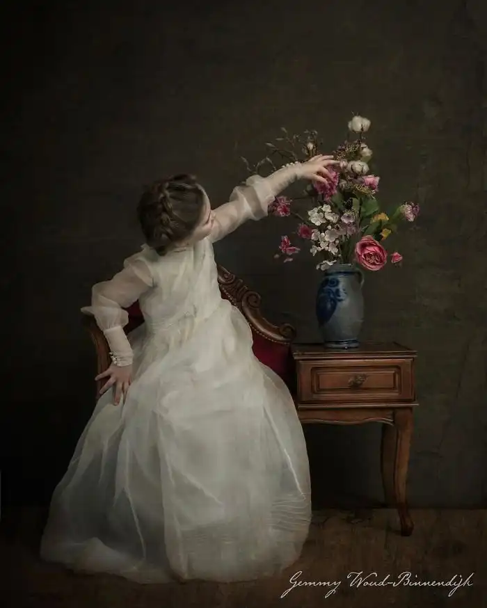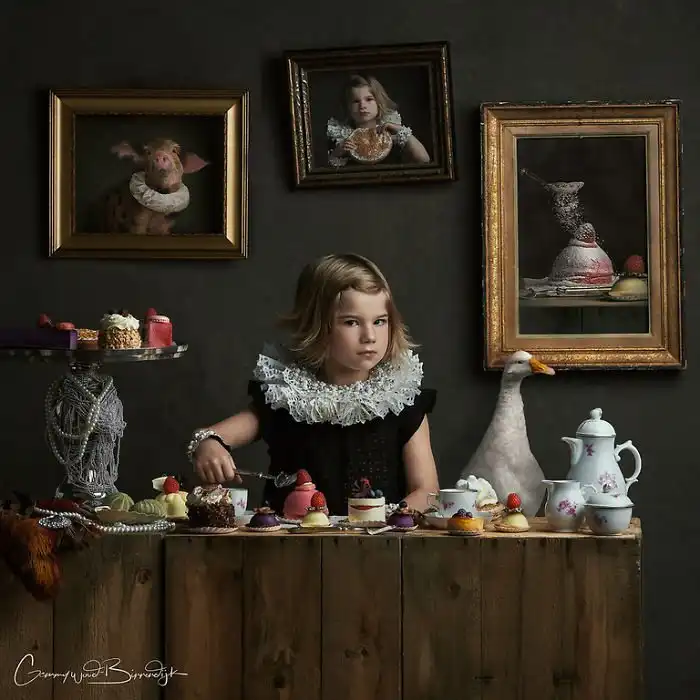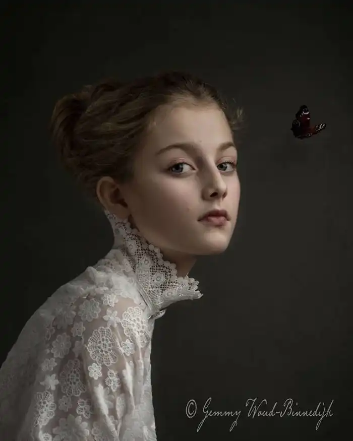 Сначала Джемми Вуд-Биннендейк стала ювелиром, затем выучилась на мультимедийного дизайнера, но нашла свое призвание именно в художественной фотографии. Движимая любовью к людям, животным и сильным творческим порывом, она привносит прошлое в настоящее в своей портретной съемке. Девушка признается, что ее главные вдохновители - художники Золотого века голландской живописи.