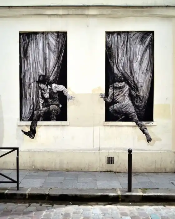 Давайте взглянем на работы парижского уличного художника Чарльза Леваля (Charles Leval), также известного под прозвищем Levalet, который гармонично интегрирует свои рисунки в городской пейзаж.