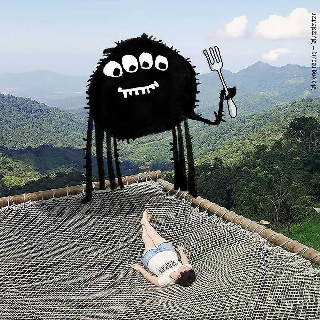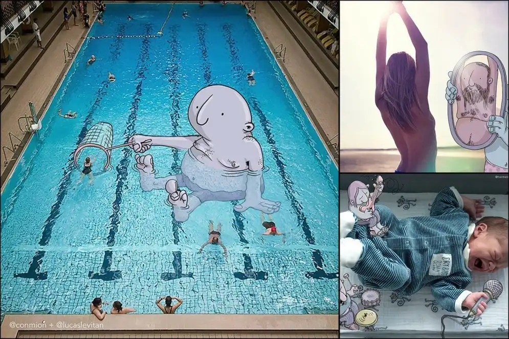 Иллюстратор дорисовывает забавные картинки к чужим фото