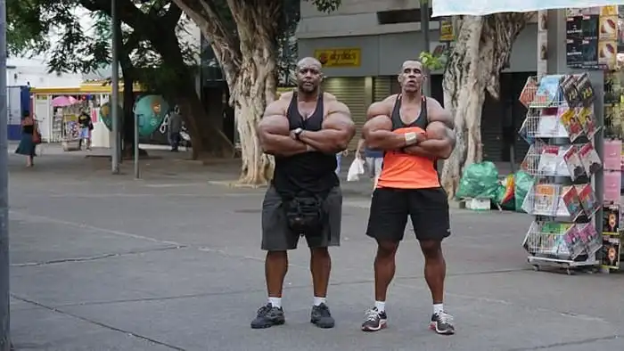 Знакомьтесь это братья Тони Джеральдо и Альваро Перейра из Бразилии, которые обрели известность благодаря своим невероятным бицепсам. 49-летний Тони по прозвищу Халк может похвастаться рукой в 71 см, в то время как его 50-летний брат Альваро по прозвищу Конан обладает обхватом руки 63,5 см. Братья употребляют стероиды, а также инъекционные препараты, увеличивающие объемы мышц. Помимо этого они много тренируются и соблюдают высококалорийную диету. По словам мужчин, они стараются грамотно использовать препараты, чтобы не нанести своему здоровью непоправимый вред.