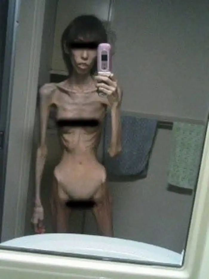 Селфи, сделанные незадолго до того, как 10 лет назад её госпитализировали, показывают девушку, выглядящую невероятно худой, с выступающими бедрами и грудной клеткой.