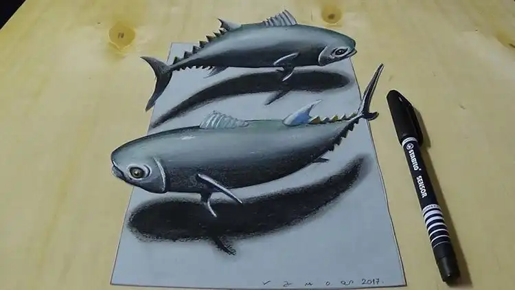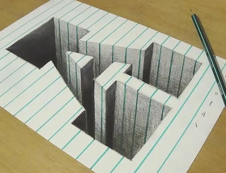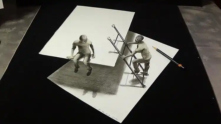 Венгерский художник Сандор Вамос (Sandor Vamos) известен благодаря своим 3D-рисункам, которые "оживают" буквально на глазах. Художник использует метод перспективной анаморфной иллюзии - когда рисунки нужно рассматривать под определенным углом, и тогда они кажутся объемными. Вамос также записывает видеоролики, в которых показан процесс создания удивительных анаморфоз.