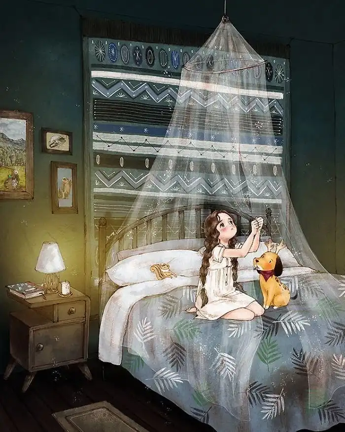 Рисунки корейской художницы-иллюстратора Иппол полны детского очарования. Солнечные лучи, плюшевые игрушки, запах сладкой сдобы, воображаемые друзья и ощущение полета - здесь все, что бывает с нами, кажется, только в чистых и безмятежных детских снах. Иппол помогает нам в эти сны вернуться.