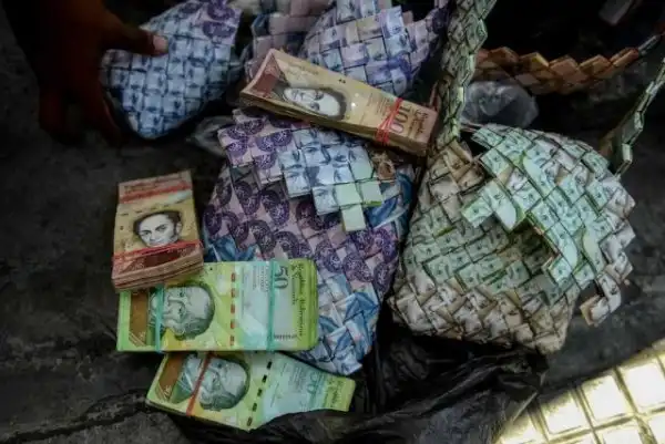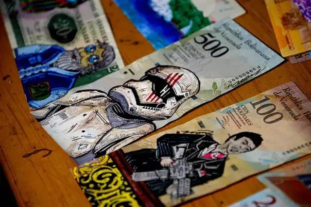 Инфляция в Венесуэле достигла астрономических 13 000 процентов. Деньги обесценились на столько, что их можно встретить на улице в кучах мусора и на мостовой под ногами. Некоторые уличные торговцы нашли способ продать банкноты дороже нынешнего официального курса. Они плетут из денег головные уборы, сумочки, юбки, кошельки и превращают банкноты в оригинальные поделки, в таком виде деньги стоят дороже. Иностранные туристы могут заплатить до $20 за одну разрисованную купюру, что увеличивает стоимость банкноты почти на 5 000 процентов.