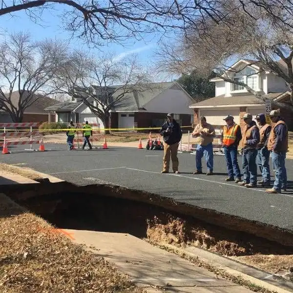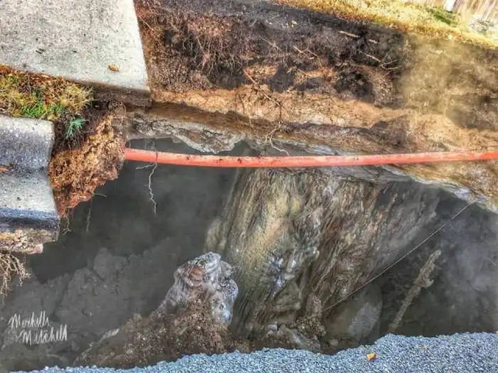 Не так давно в Техасе произошло событие, позволившее сделать настоящее открытие. На одной из дорог протекла вода, но устранить поломку труб службы не успели. Пласт земли вместе с асфальтом рухнул под землю и открыл вход в огромную пещеру. В округе Уильямсон в результате аварии без водоснабжения остались 10 домов. Вокруг воронки обустроили специальные барьеры, а фотоснимки с того места уже заполнили социальные сети.