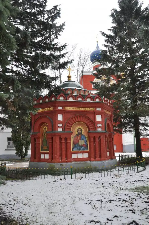 В 1910 г. чуть выше древнего колодца была возведена шестигранная надкладезная часовня, украшенная богатой декоративной лепниной. На гранях часовни размещены изображения ликов святых. В росписи стен часовни принимали участие лучшие художники Пскова.