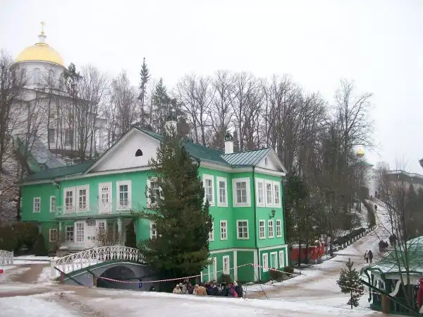 Это двухэтажное зелёное здание на каменном фундаменте построено в 1883 г. у подножия Михйловского собора. В 1990 г. прямо от дома к собору построили крытый переход с лестницей. В нижнем этаже располагаются административные службы монастыря, а на втором находятся личные покои настоятеля. По праздникам с маленького балкончика, что над мостом, он благословляет прихожан и раздаёт им дары. Покои настоятеля охраняют казаки с шашками.