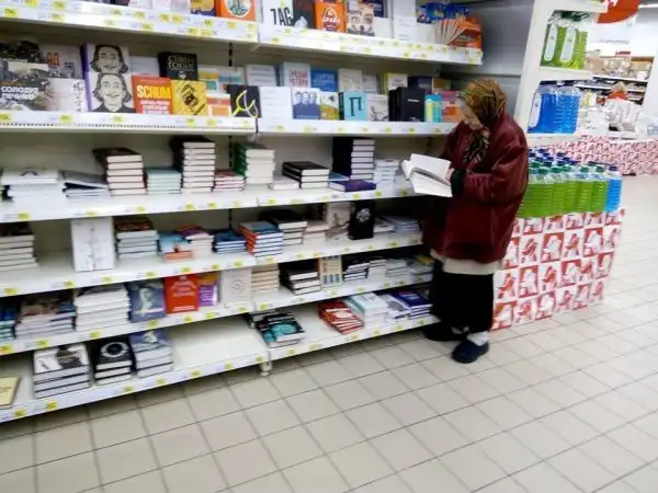 Один из пользователей Facebook опубликовал фотографию бабушки, которая тихонько стояла у одного из стендов в киевском торгово-развлекательном центре «Магелан». Оказалось, что она приходит сюда уже лет пятнадцать, с определенной целью. Бабушка по имени Анастасия ничего не покупает, а только приходит в книжный отдел и читает. Пользователь подошел к ней пообщаться, а она застеснялась, сказала, что дома нечего делать и жизнь тяжелая, положила книгу и ушла.