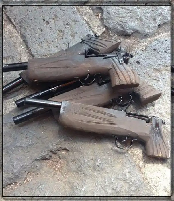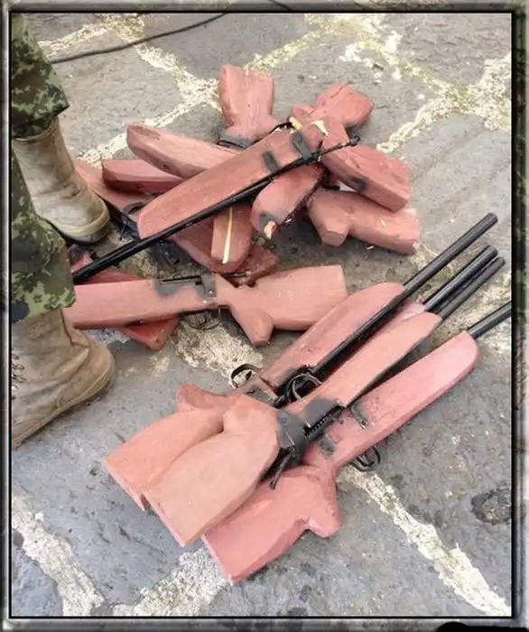 Вы никогда не видели семиствольного ружья или деревянных автоматов? А может вам встречалось оружие, состоящее из бруса и изоленты? Нет? Тогда смотрите! Ребята с уверенностью позируют на камеру, держа в руках подобное оружие. А, может, это просто детские забавы?