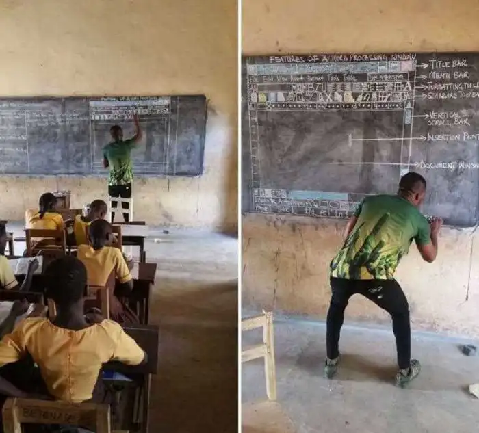 Данные снимки, которые стали вирусными в Сети, прекрасно отображают порядок вещей, который сложился в этом государстве: на фотографиях учитель информатики достаточно качественно и талантливо изображает мелом на доске интерфейс Microsoft Word, выделяя его основные элементы.