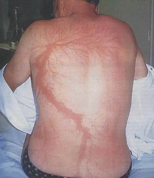 Говорят, что молния дважды в одно место не бьет, у этого человека встреча со стихией была 5 раз, и каждый раз на теле оставались странные метки