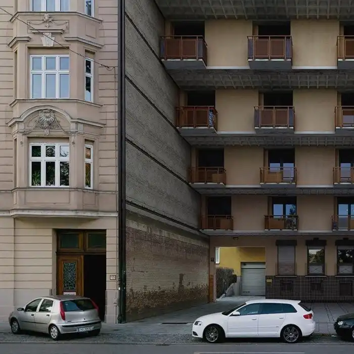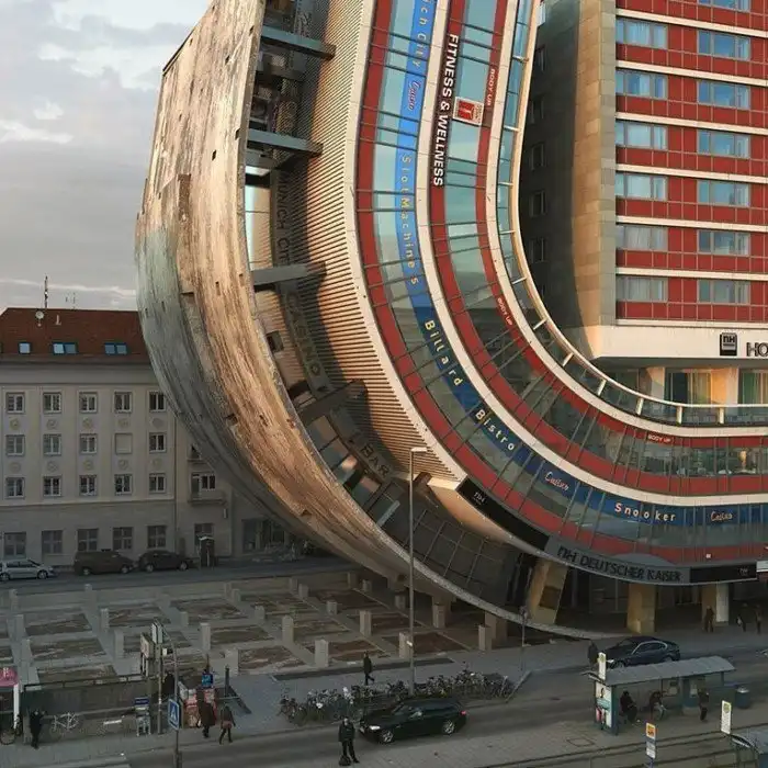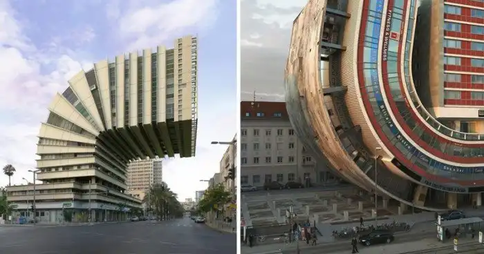 Виктор Энрич гнет, сгибает, подбрасывает в воздух, заваливает на бок и перекручивает бедные-несчастные здания. "Издевается" над ними как хочет