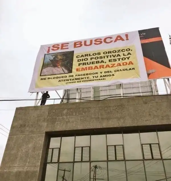 Мексиканка заказала бигборд с надписью, которая полостью разоблачает ее бывшего: «Разыскивается! Карлос Ороско, тест на беременность оказался положительным. Я беременна». Плакат разместили на вершине дома в оживленном районе. На рекламном щите также указаны все подробности поступка «беженца». Послание подписано с иронией: «Ваш друг (как вы меня всем представляли)». Скорее всего, будущий отец прочел этот пост, поскольку в считанные дни он разлетелся по всему интернету.