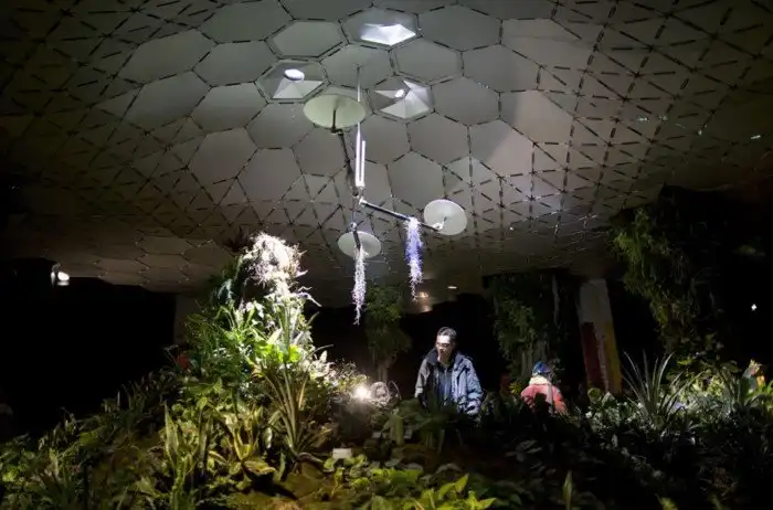 Первый подземный парк Нью-Йорка. Вместо заброшенного вокзала в Нижнем Ист-Сайде жители города к 2020 году получат рекреацию с настоящими деревьями. Пока открыли демоверсию. Специальные зеркала захватывают солнечный свет с улицы и через систему зеркальных труб распространяют его на солнечные панели-навесы © Mary Altaffer