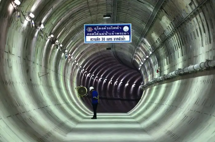 Метро Бангкока. На фото рабочий осматривает тоннель под рекой Чаупхрая на станции метро Mass Rapid Transit © Athit Perawongmetha