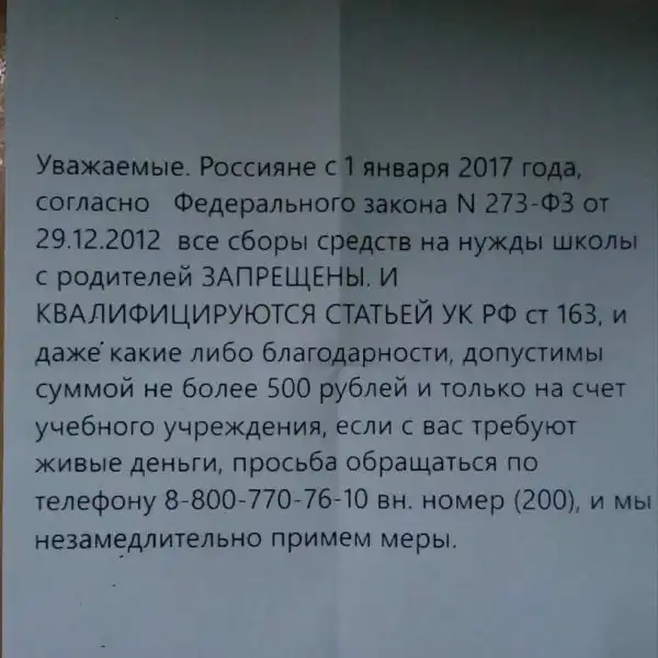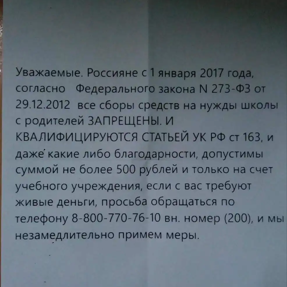 Вот и сам закон, согласно которому сбор средств на нужды образовательных и дошкольных учреждений запрещен