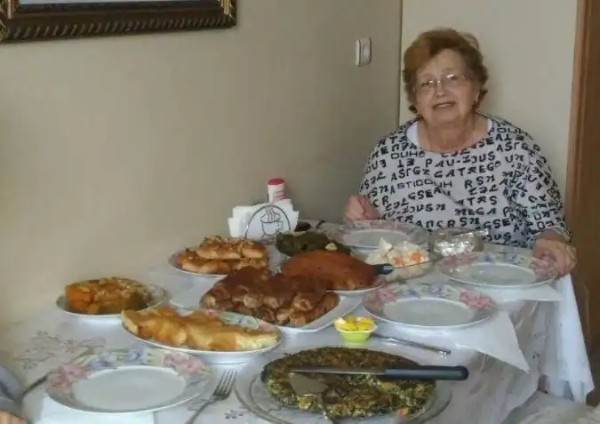 Турецкая бабушка с гордостью показывает обед, который она приготовила. Через девять минут после того, как было сделано это фото, она умерла от инфаркта.