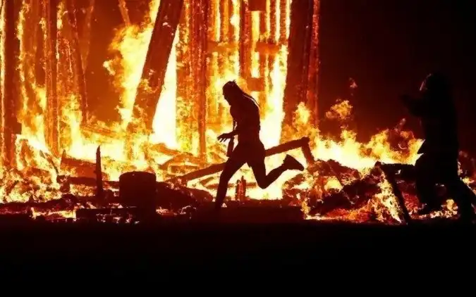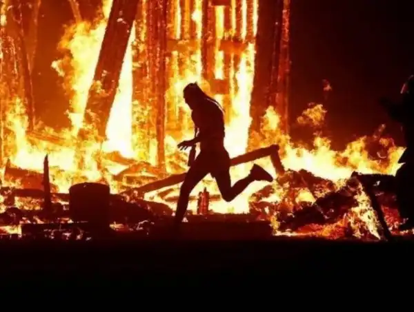 Мужчина вбегает в горящий макет здания на фестивале «Горящий человек» (Burning Man) в 2017 году. До сих пор остается неясным, зачем он это сделал. В его останках не обнаружено следов алкоголя или других токсикологических веществ.