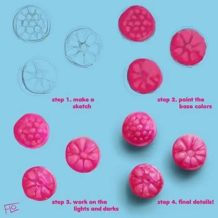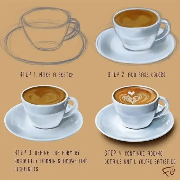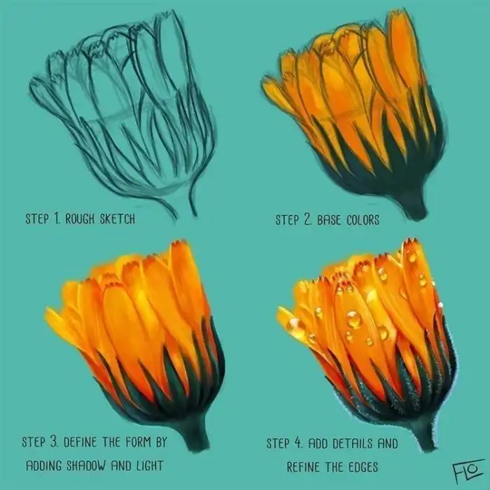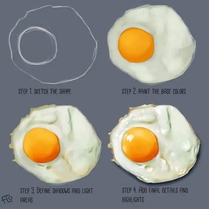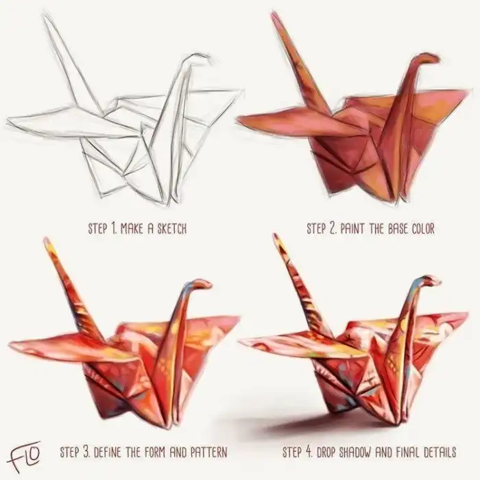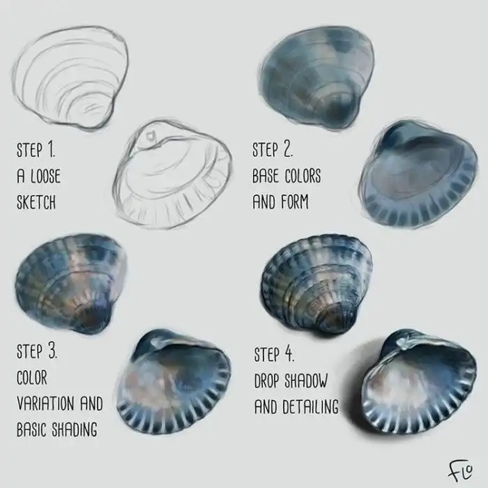 Как правило, большинство из них состоят из 4 этапов: рисование наброска, добавление базовых цветов, добавление деталей и теней, и наконец добавление бликов и конечных деталей