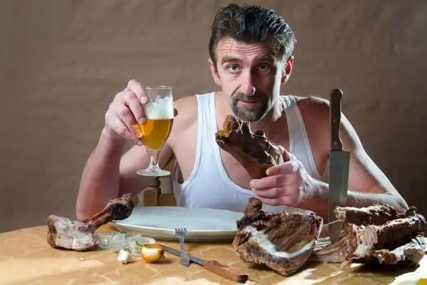 Настоящий мужик любит горячее мясо, холодное пиво и красивых женщин.