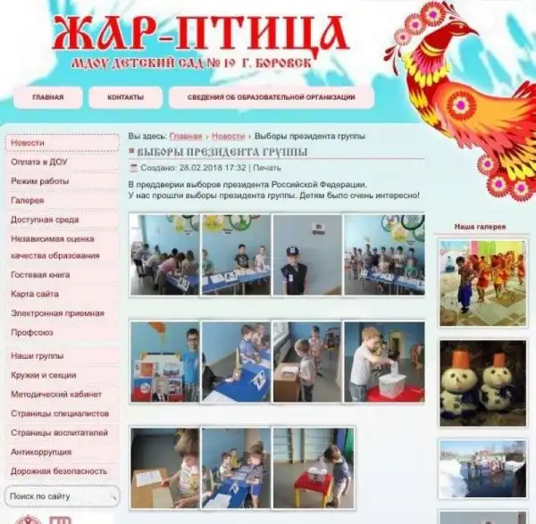 В детском саду "Жар Птица" города Боровск малышня поиграла в выборы президента. Несмотря на то, что "голосовал" электорат ясельной группы, процедура прошла с соблюдением всех правил: в группе были державные стяги, портрет Путина, работала избирательная комиссия, велось "видеонаблюдение", а бюллетени выдавались по паспортам. Дабы на волеизъявление граждан не оказывали влияние товарищи из соседней группы Цветочек, за голосованием пристально наблюдали нянечки.