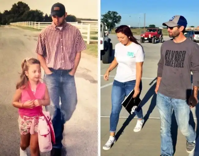 10. «Вот как папа привел меня „первый раз в первый класс“. То же самое он сделал в мой последний учебный день»
