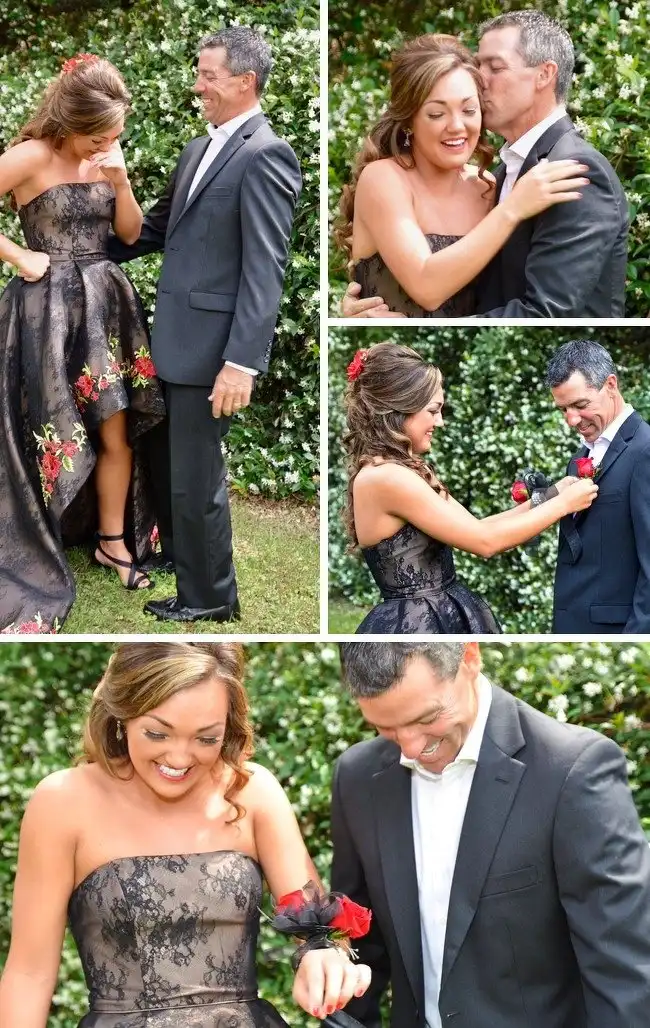 13. «Папа много работает, и из-за этого он вчера не успел проводить меня на выпускной бал и сделать со мной пару традиционных снимков, поэтому сегодня я нарядилась еще раз. Не расстраивайся!»
