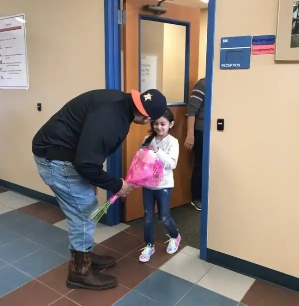 6. «Папа отпросился с работы, чтобы подарить моей сестре цветы, пока та в школе на занятиях»