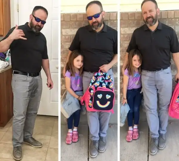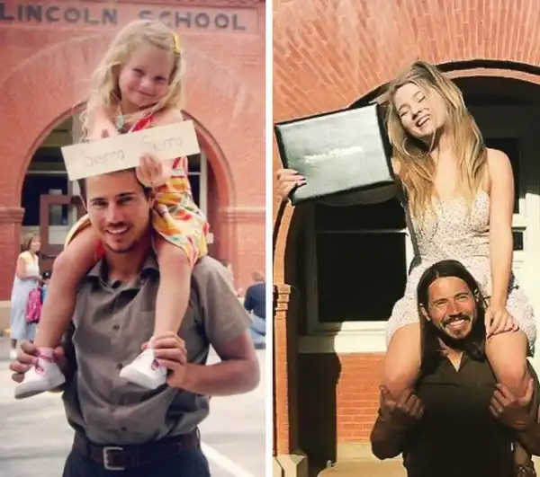 5. «Папа проводил меня до школы в мой первый учебный день. И сегодня, в мой последний учебный день, он снова рядом»