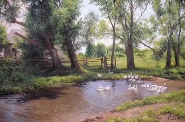 Автор этих работ — талантливый российский художник Вячеслав Палачёв. Его пейзажи простой русской деревни, даже зимние, наполнены каким-то невообразимым теплом и уютом. Удивительным образом, в каждом из этих домов узнаёшь тот самый, свой, с которым связано так много чудесных воспоминаний.