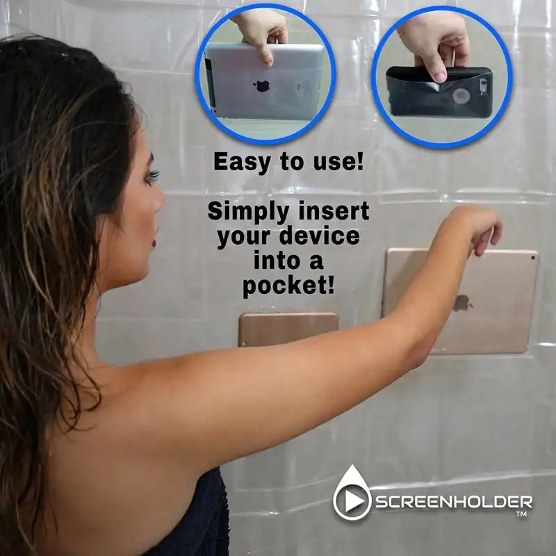 На Amazon появилась новинка, которая придется по душе тем, кто не может расстаться со своими гаджетами (мобильный, планшет) даже во время принятия гигиенических процедур. Это вертикальные и горизонтальные пластиковые водонепроницаемые конверты, крепящиеся на стену, стекло душевой кабинки или на занавеску.