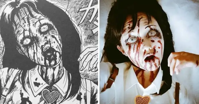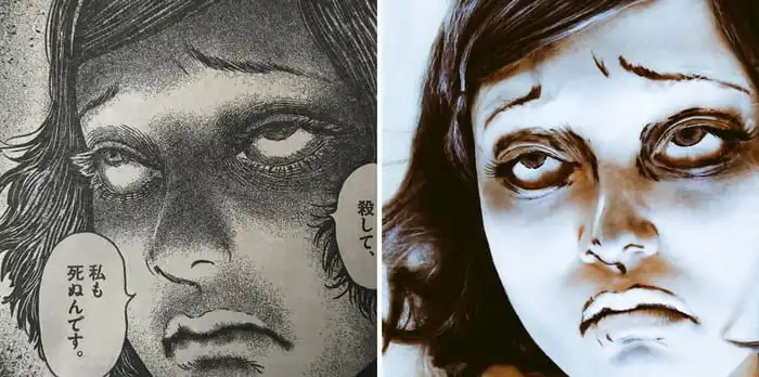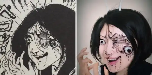 Талантливая девушка воспроизвдит самые страшные манга через мэйк-ап