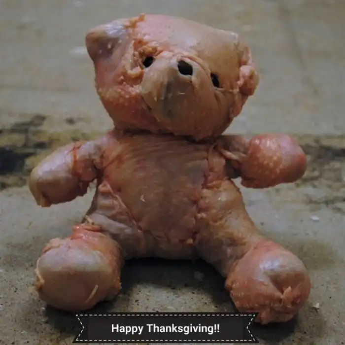 9. Что за черт? Российский дизайнер просто решил сделать мишку из куриного мяса и кожи