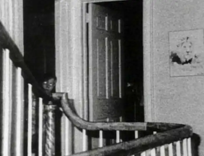 Снимок был сделан в известном доме в США, в котором произошла трагедия семьи Лутцов. История легла в основу фильма "Ужас Амитивилля". Демонологи сделали это фото в 1976 году, и на момент съемки никаких детей в доме не было.