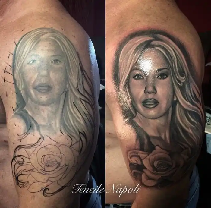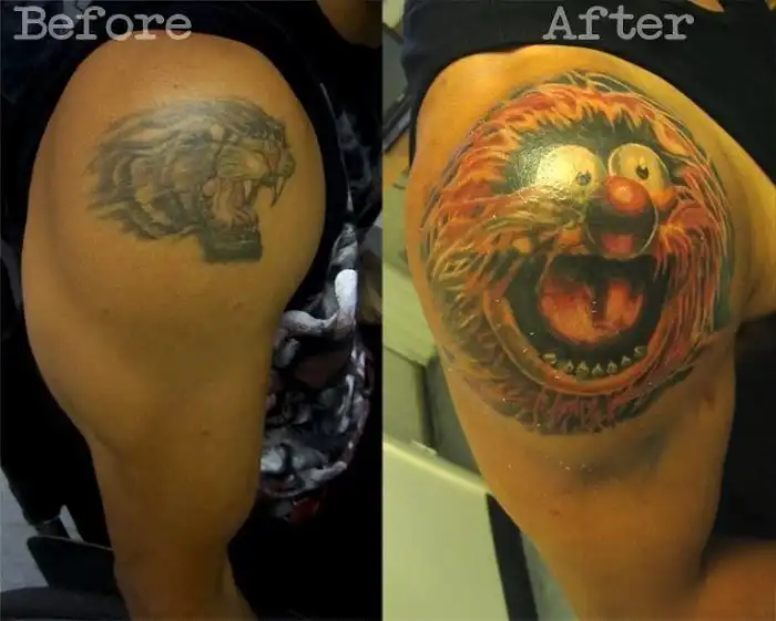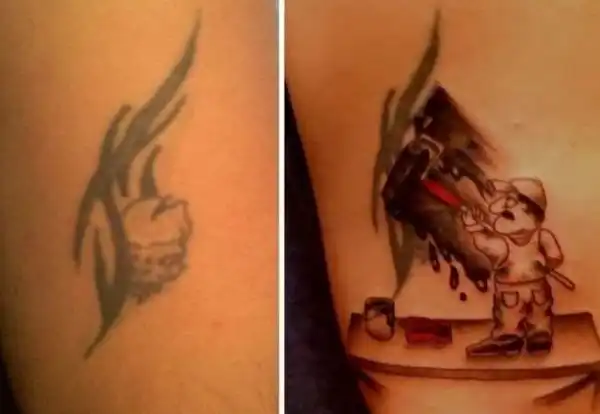 Во многих случаях людям нравится изначальная задумка татуировки, но не нравится исполнение. И хороший мастер способен это исправить. Хотя в большинстве историй это всё то же рисование новой татуировки поверх старой, прежним остаётся только изображённый персонаж или объект. Оно и к лучшему.