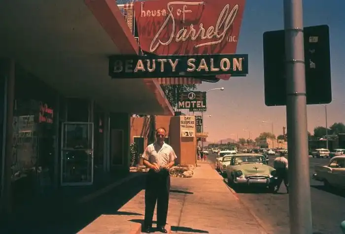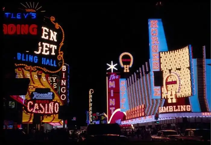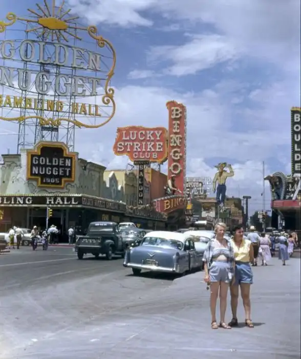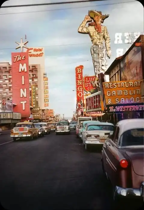 Эти цветные фотографии изображают улицы Лас-Вегаса в 1950-х годах.