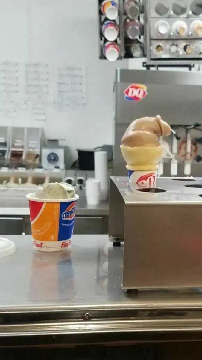 А тут наоборот. Излишняя теплота и мороженое превращается, превращается мороженое...