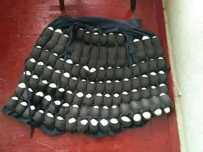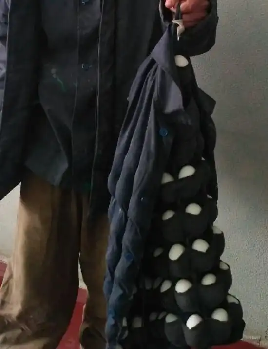 Перед вами куртка одного предприимчивого сторожа птицефабрики, который умудрялся за одну смену выносить за ворота предприятия 110 яиц. Для этого он использовал обычную куртку, которая была специально подготовлена для новых целей. Яйца сторож потом продавал на рынке, а попался он в тот момент, когда пытался перелезть через забор.