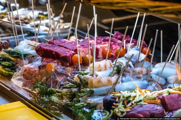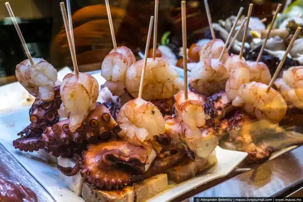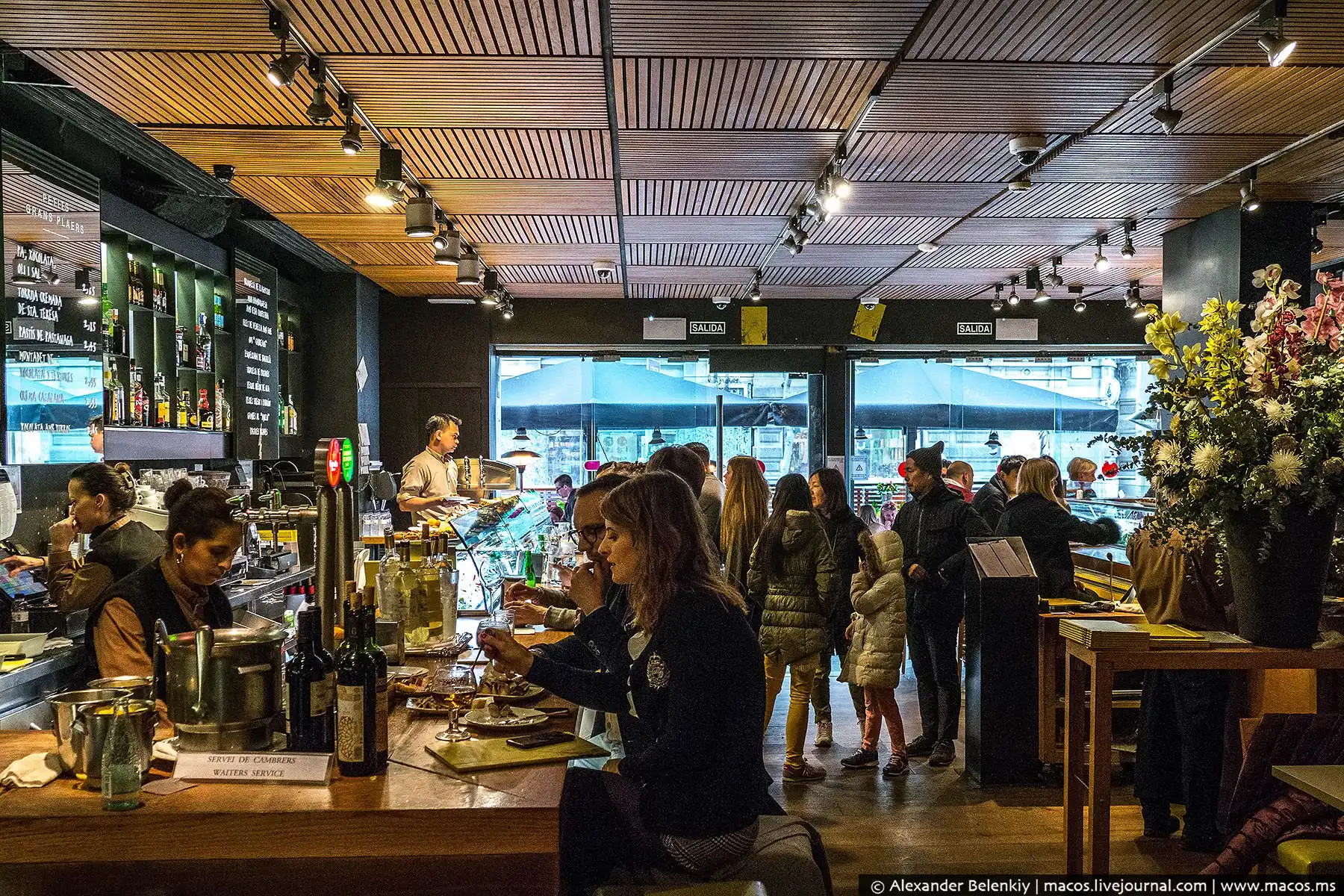 Тапас-баров в Барселоне видимо-невидимо, счёт на сотни. Такой формат привычен местным и пришёлся по вкусу туристам, вот только туристические тапасы - совсем другие, внешним видом больше напоминают канапе. Чтобы отведать настоящих, придётся отстоять в очереди, причём чем вкуснее место, тем длиннее будет очередь. По испански такое заведение называется сервесерия, то есть в буквальном переводе "пивнушка", вот только пить там совершенно не обязательно. Весь смысл в еде.