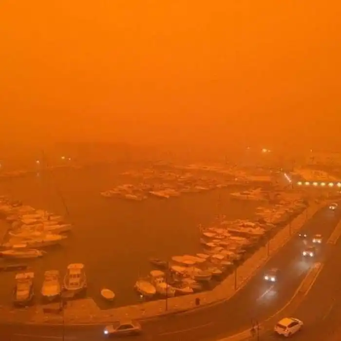 Греческий остров Крит накрыла африканская пыль. Небо над островом окрасилось в оранжево-красный цвет, местные жители вынуждены носить марлевые повязки и стараются не покидать свои дома без надобности. Из-за жары и сильного ветра также увеличилось число лесных пожаров. Погодные условия затрудняют работу сотрудников спецслужб. Фото без фильтров.