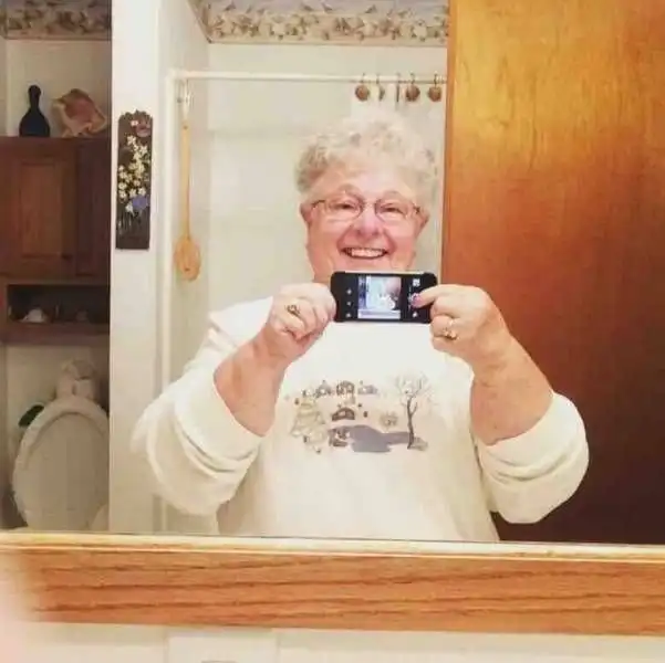 Женщина делает свое первое селфи.