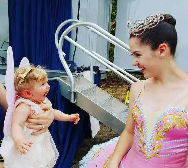 Девочка впервые увидела балерину.