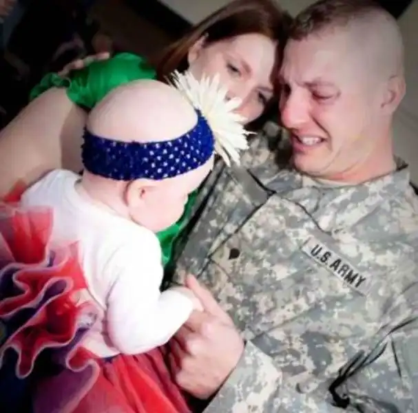Военнослужащий впервые увидел свою дочь.
